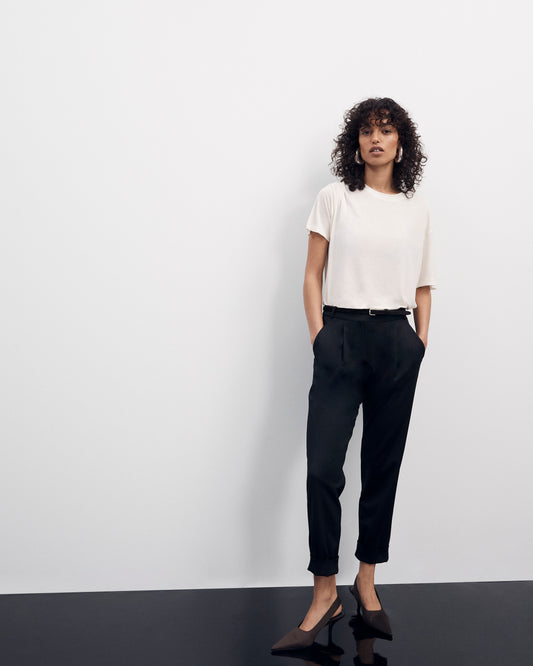 Looking for an eco-friendly evening outfit or a sustainable wedding guest dress? Our occasion styles are made to be worn, re-worn, and styled multiple ways. Pair a flui midi legnth silk dress with minimalist heels, or match a wool blazer with tailored trousers and a draped blouse for a modern alternative to the cocktail dress.