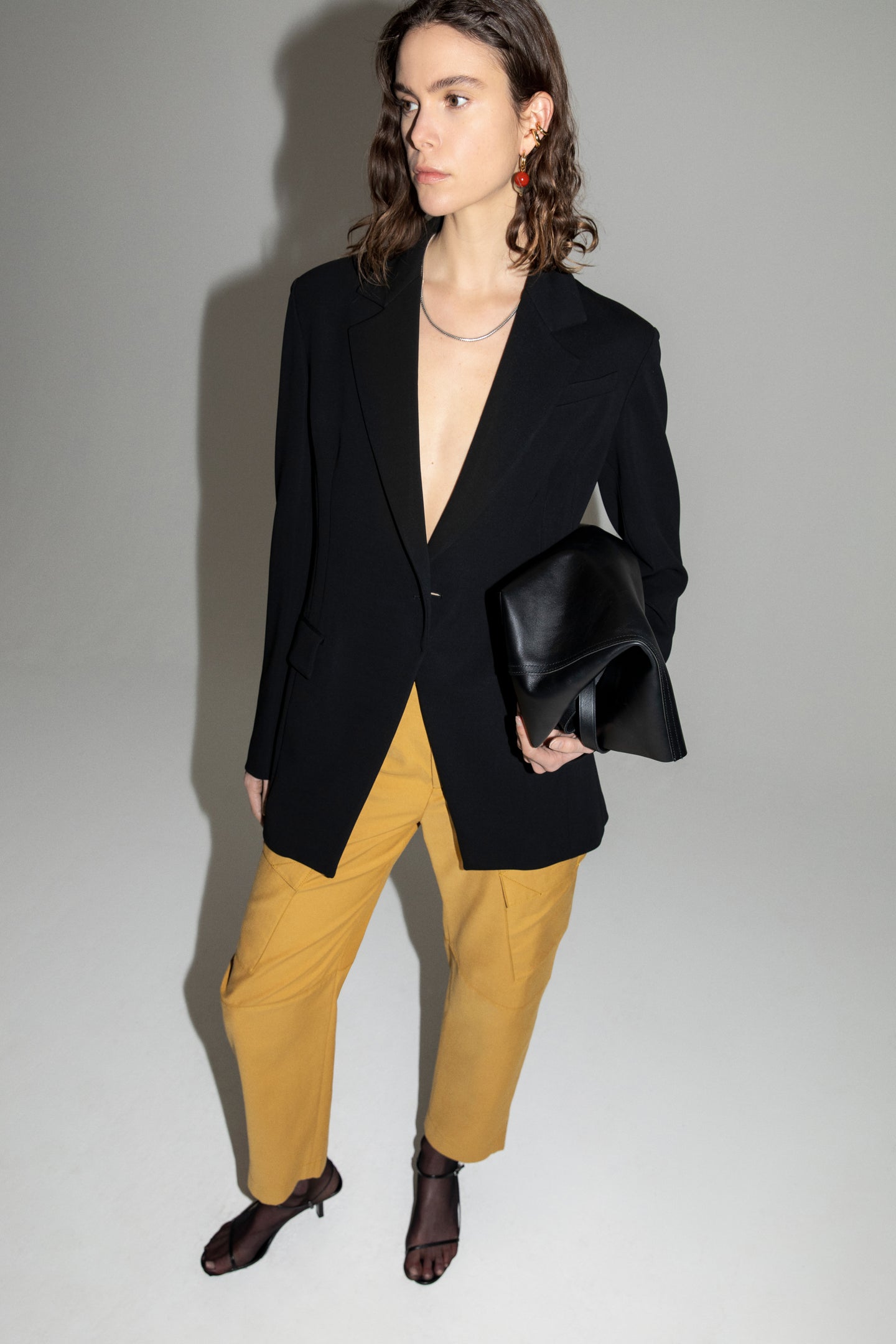 An understated take on a cargo pant that can be paired with both casual and more formal shirting. The curved structure softens the silhouette. The slightly cropped length leaves room at the ankle.