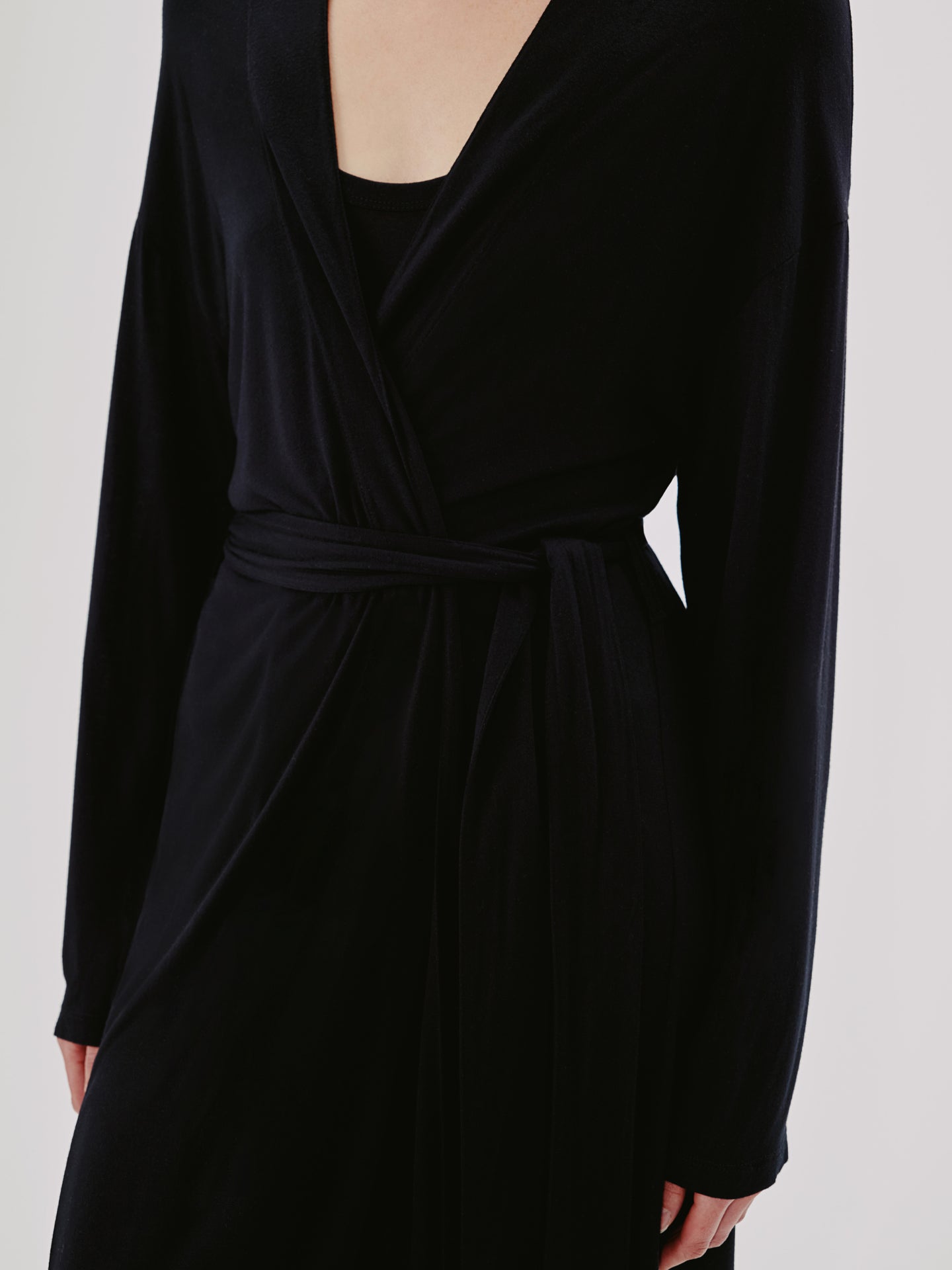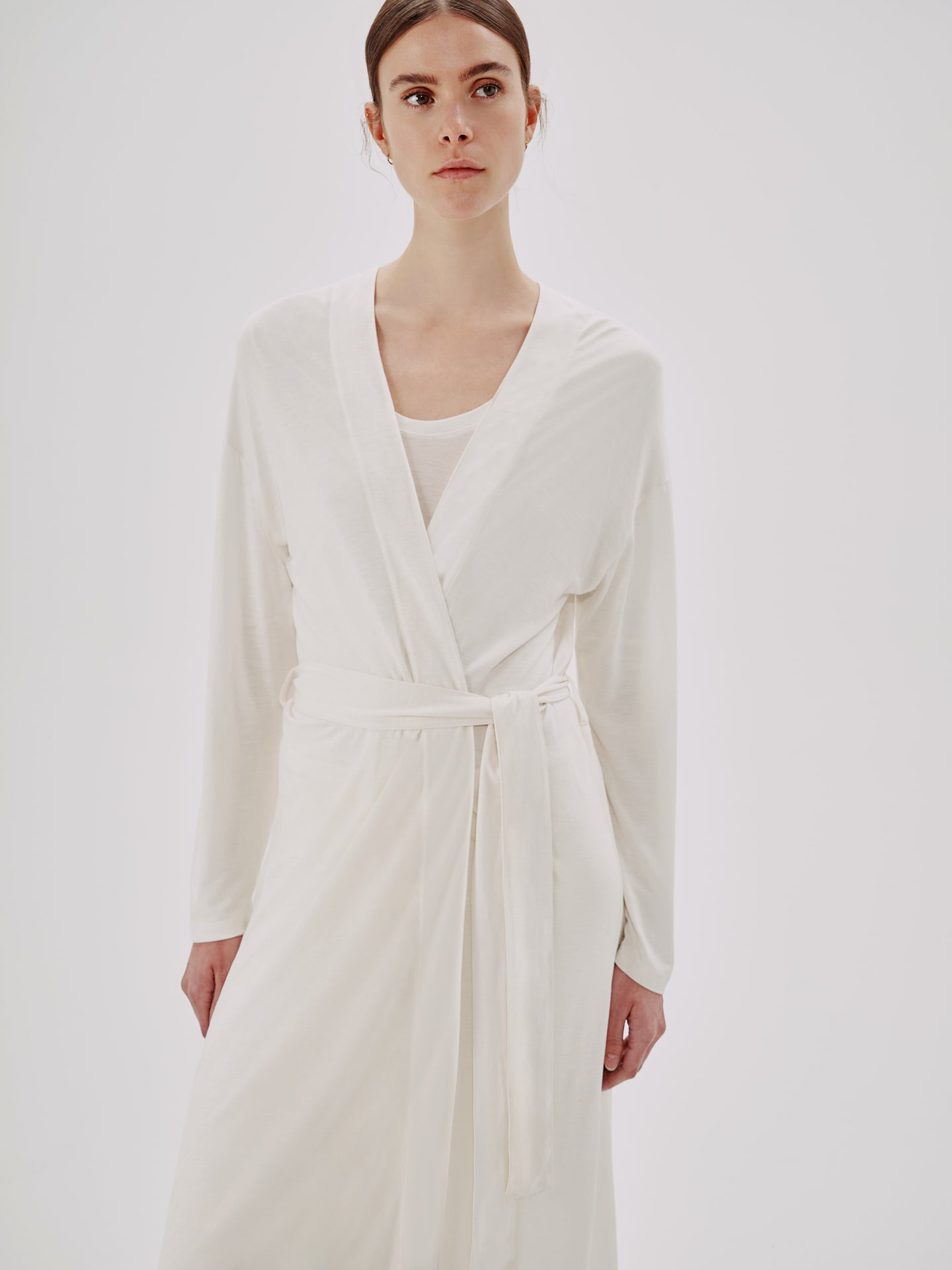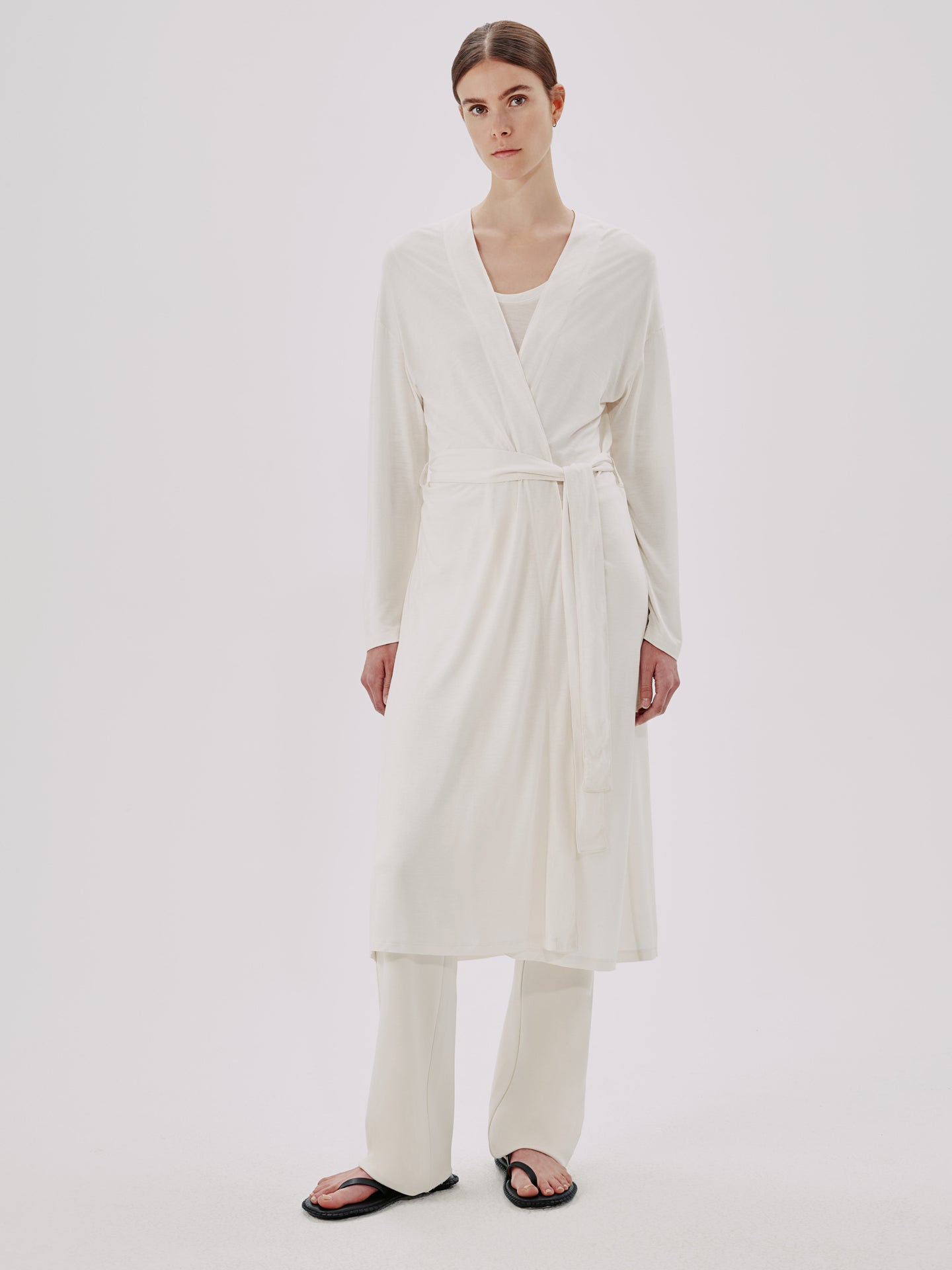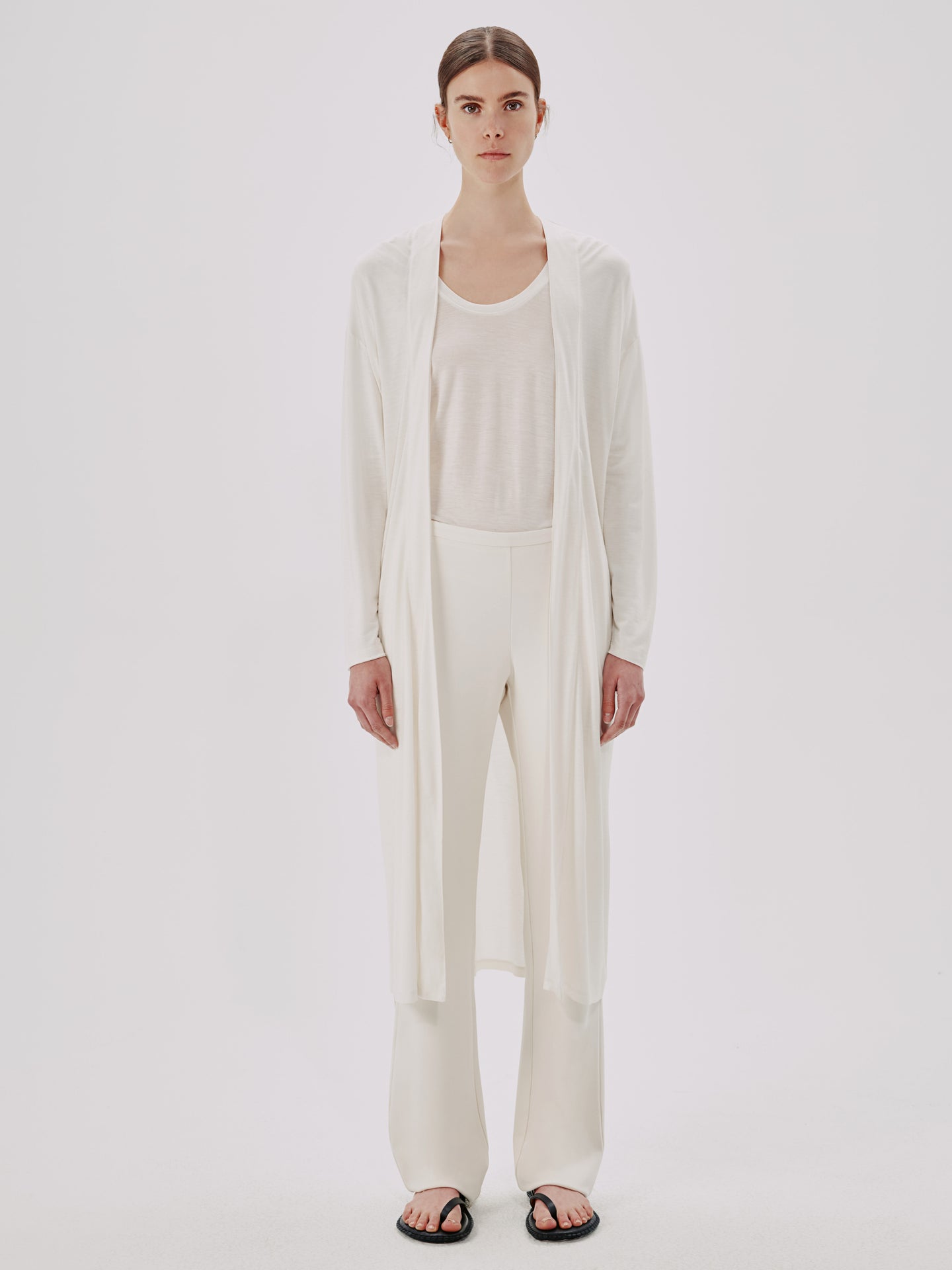 Lightweight and slightly sheer, the incredibly soft seacell and jersey blend imparts a sense of fluidity and poise to this quintessential loungewear piece. Pair with the Bonded Jersey Slim Pant and Ballet Scoop Tee for an evening of comfort.