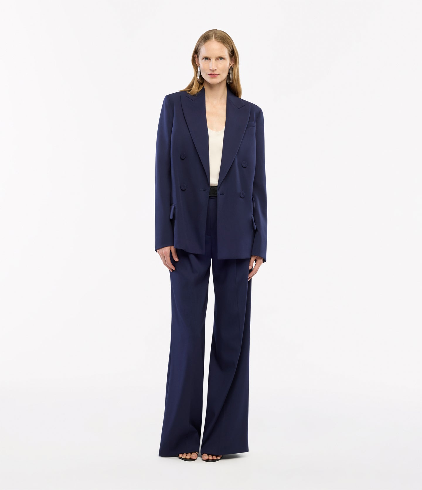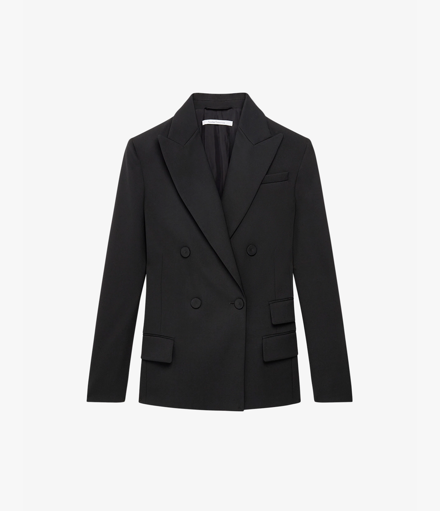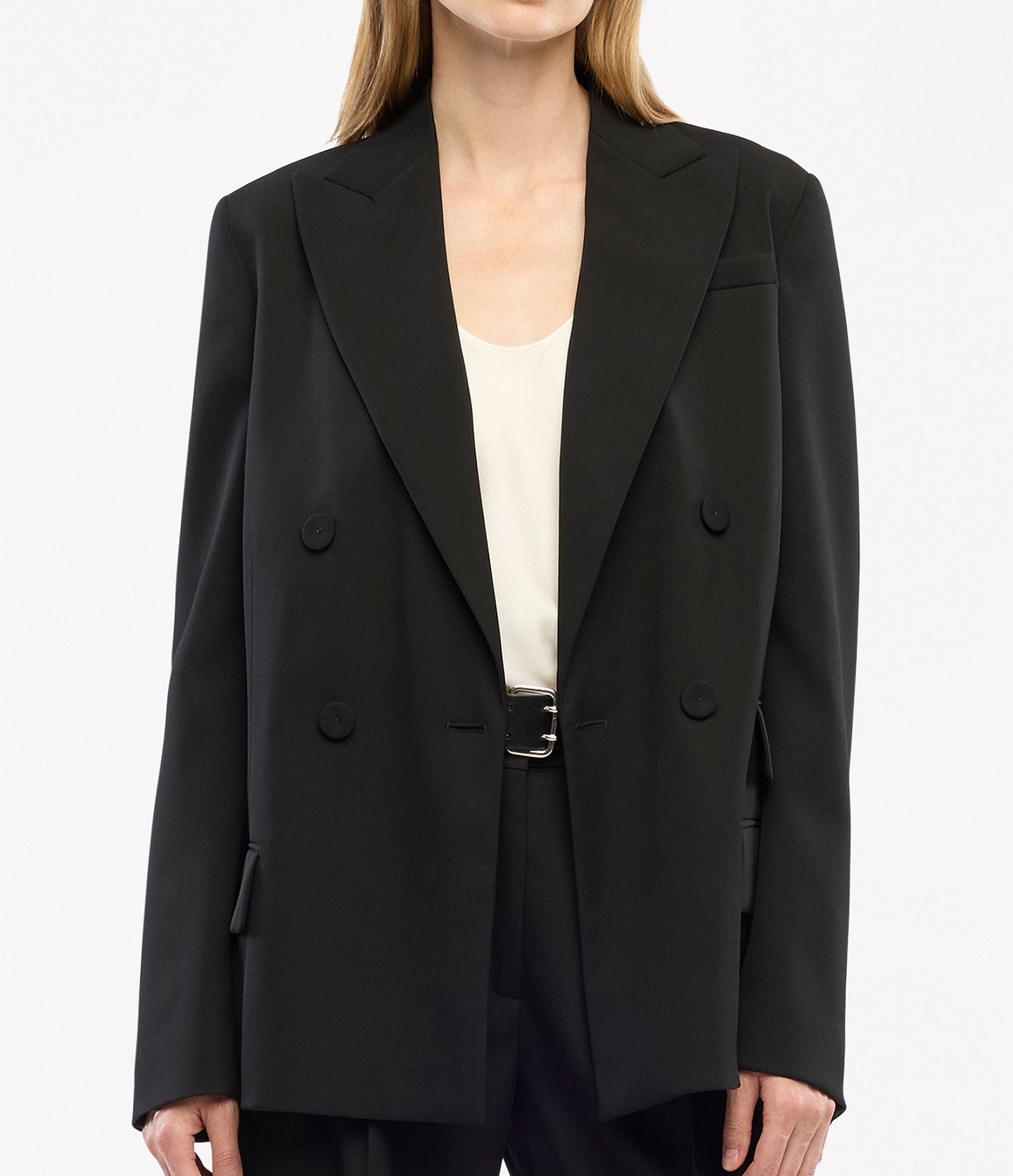 Crafted in our merino wool, our precisely tailored double-breasted jacket has a relaxed fit featuring flap-front pockets and self-covered buttons.