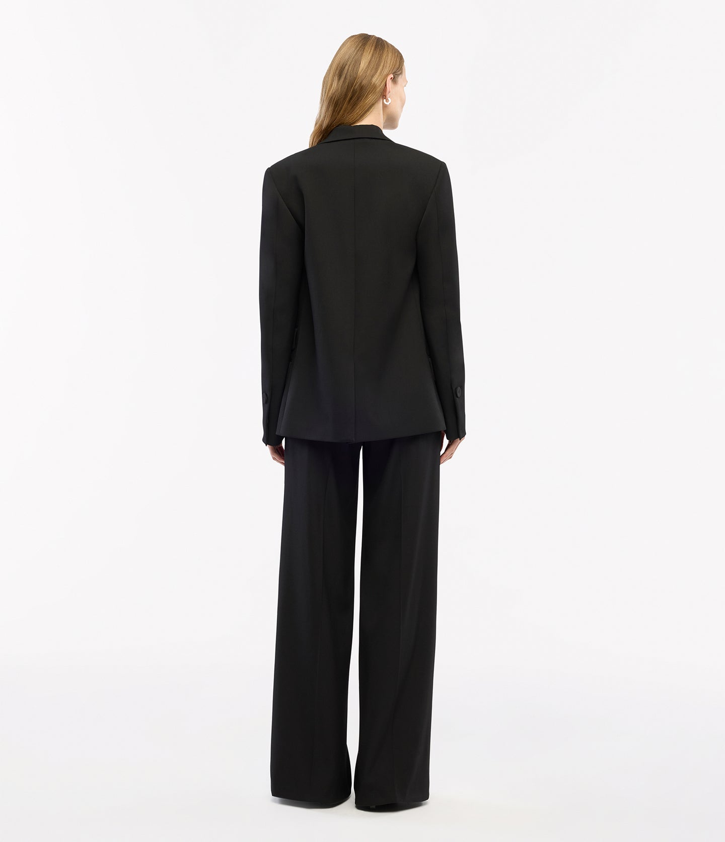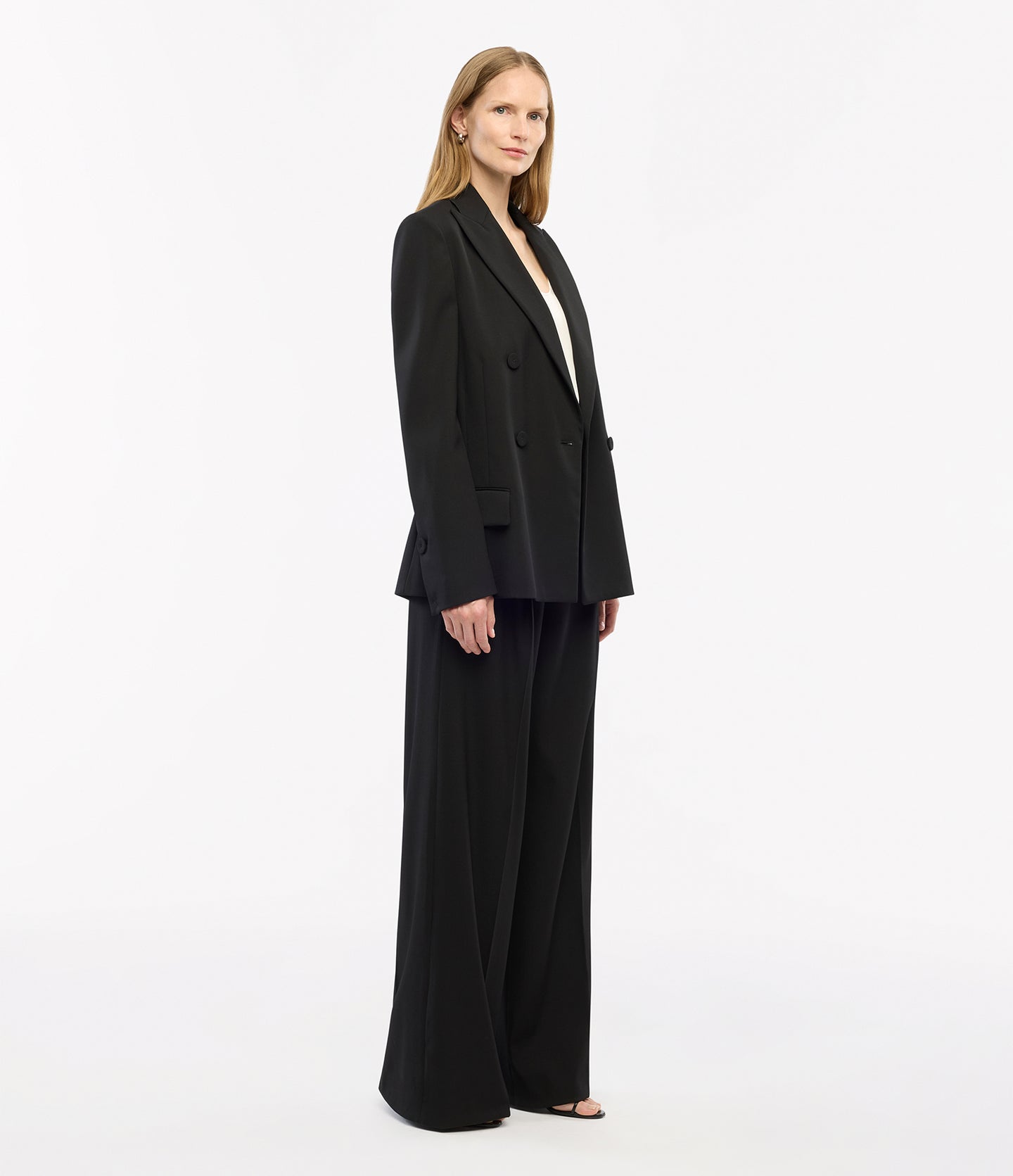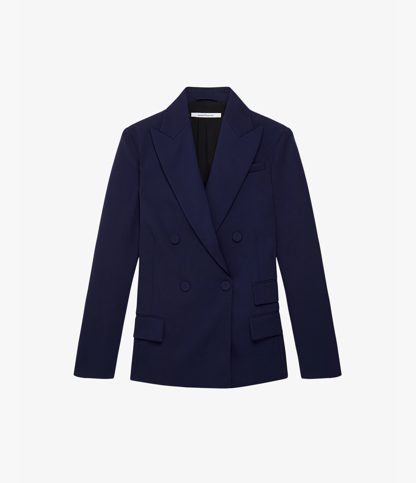 Crafted in our merino wool, our precisely tailored double-breasted jacket has a relaxed fit featuring flap-front pockets and self-covered buttons.