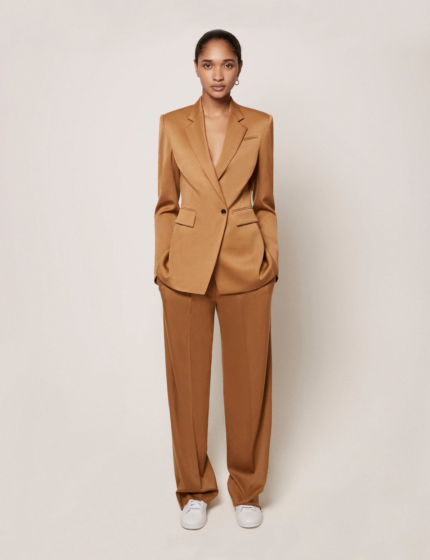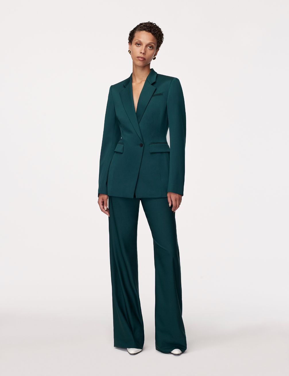 This jacket is exquisitely tailored with detailed seaming for a flattering, accentuated waist shape. Crafted in our seasonless, ethically-sourced wool, it can be worn as a separate, or go for a full look with our Wide Leg Suit Pant or Relaxed Wide Leg Pant.